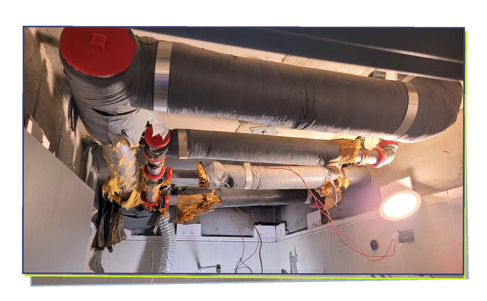 내부 배관을 점검한 결과 냉수관 이음부의 균열 에서 누수가 시작되었음을 확인했습니다.